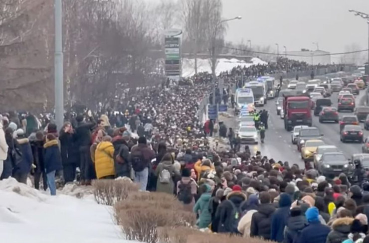 По сообщениям российских СМИ, возле церкви и кладбища было выставлено множество ограждений, а территорию патрулировали полицейские. К храму, где отпевали Навального, выстроилась очередь, которая растянулась на несколько километров. Люди встречали катафалк с телом политика, скандируя: "Навальный!", "Россия будет свободной!", "Не простим!". Когда гроб увозили на кладбище, присутствующие забросали его цветами.