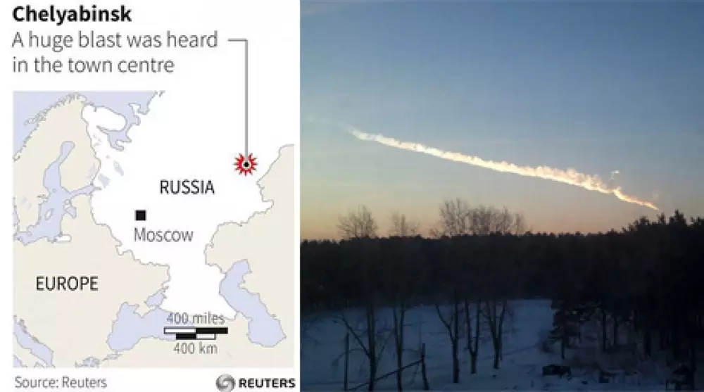 Метеоритный дождь 15 февраля зафиксировали в Челябинской, Тюменской, Курганской и Свердловской областях, а также на северных территориях Казахстана.