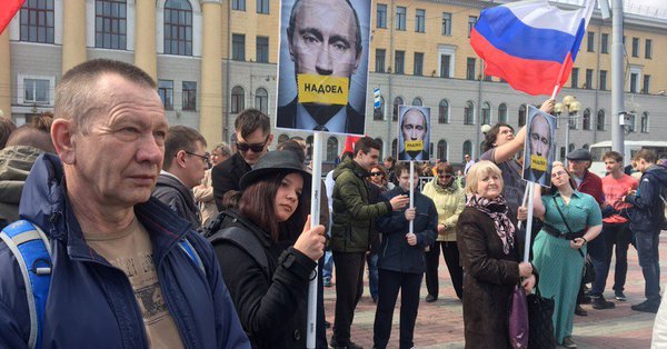 По всей России прошли протесты против Путина под лозунгом "Надоел" © twitter