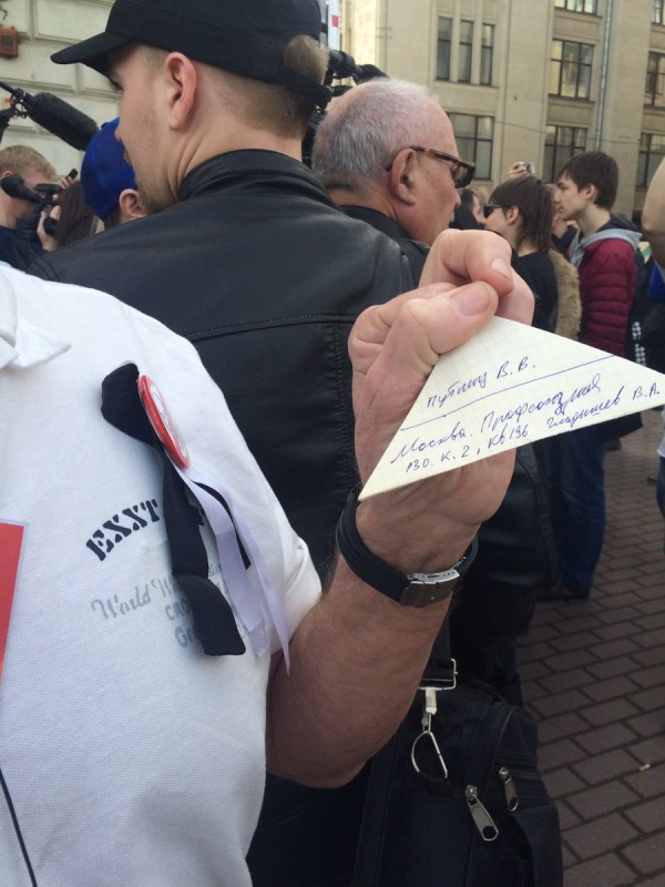 Участники мероприятия пришли к приемным президента России с обращением к главе государства, написанном на специальных бланках. Люди призвали Путина не идти на очередной президентский срок.