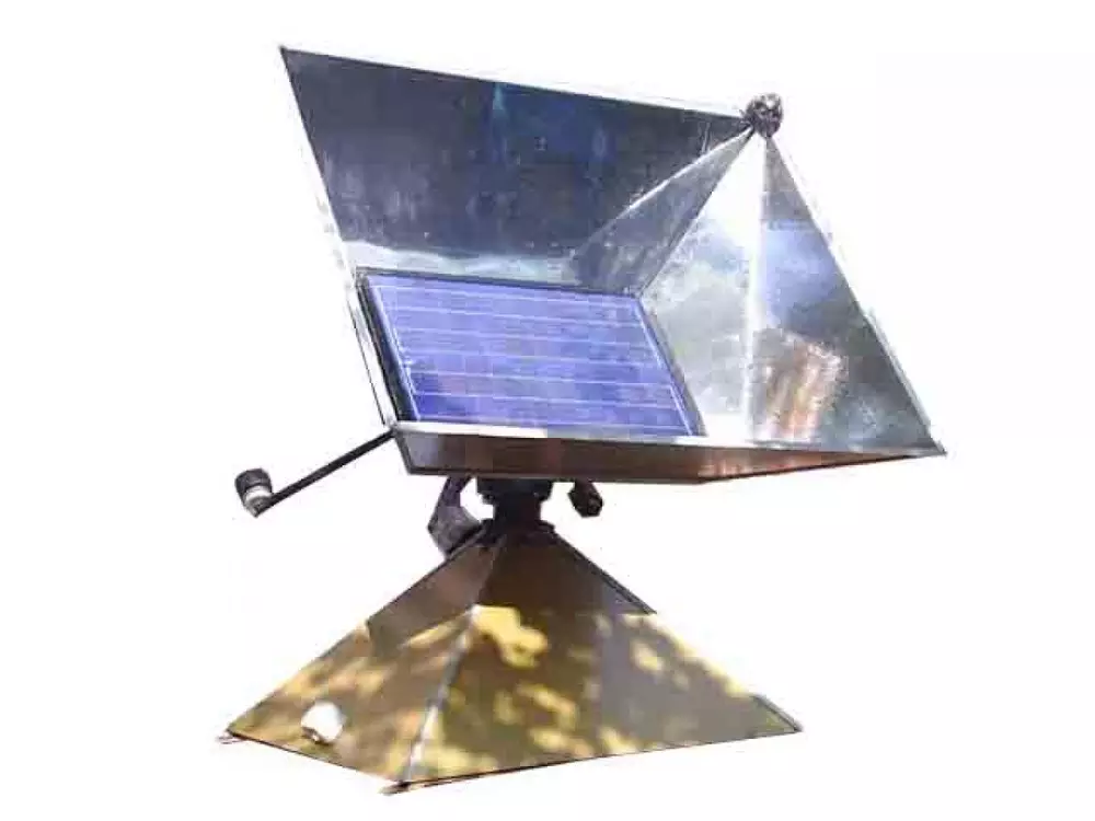 Кроме того, фотоэлемент на солнечной батарее обрамлен отражателями, которые выполняют функцию световых концентраторов. Помимо прочего, они позволяют аккумулировать не только электроэнергию, но и тепло - изобретатель предлагает использовать их для нагрева воды. Также в установку включен инвертор, преобразующий постоянный ток в стандартное переменное напряжение в 220 вольт и частотой в 50 герц.