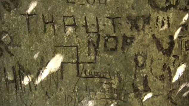 Внутри постройки исследователи нашли немецкие монеты периода 1938-1944 годов и фарфоровую посуду примерно того же времени с маркировкой "Сделано в Германии". На стенах, толщина которых составляет до трех метров, видны надписи на немецком языке и изображения свастики. Комплекс состоит из жилого помещения, склада и наблюдательного пункта.