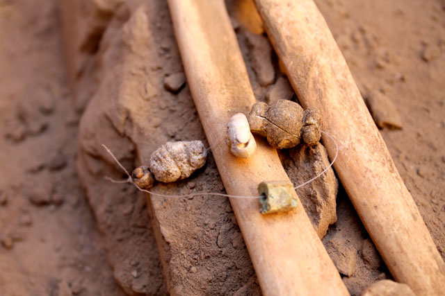 Бусы из горного хрусталя с рубиновой подвеской, обрамленной золотом, археологи оценили в 100 тысяч евро.
