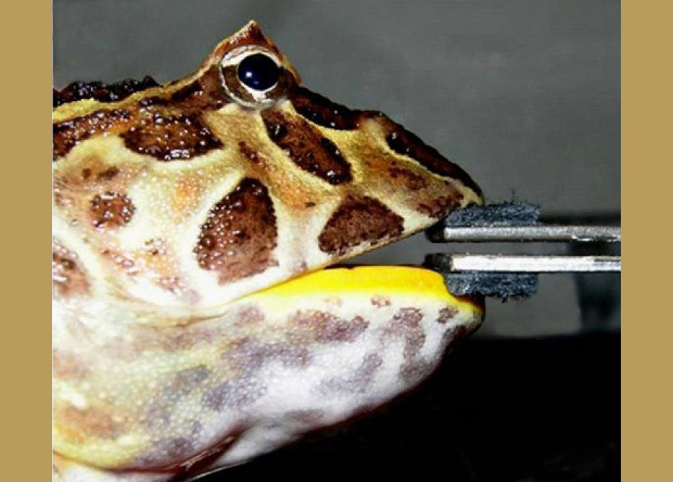 "В отличие от подавляющего большинства лягушек, которые имеют слабые челюсти и обычно поедают небольшую добычу, рогатые лягушки устраивают засаду на животных таких же размеров, как они сами, например других лягушек, змей и грызунов. И их мощные челюсти играют решающую роль в захвате жертвы", - рассказал руководитель исследования Марк Джонс из Университета Аделаиды.