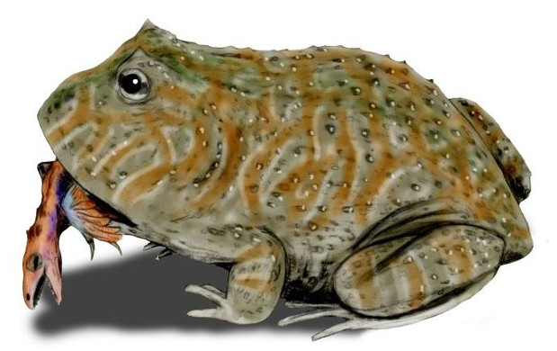 Длина лягушки-монстра составляла до 41 сантиметра, вес - до 4,5 килограмма. Чтобы рассчитать силу челюстей вымершей амфибии, команда ученых из США и Великобритании провела серию экспериментов с современными родственниками вельзебуфо - рогатыми лягушками.