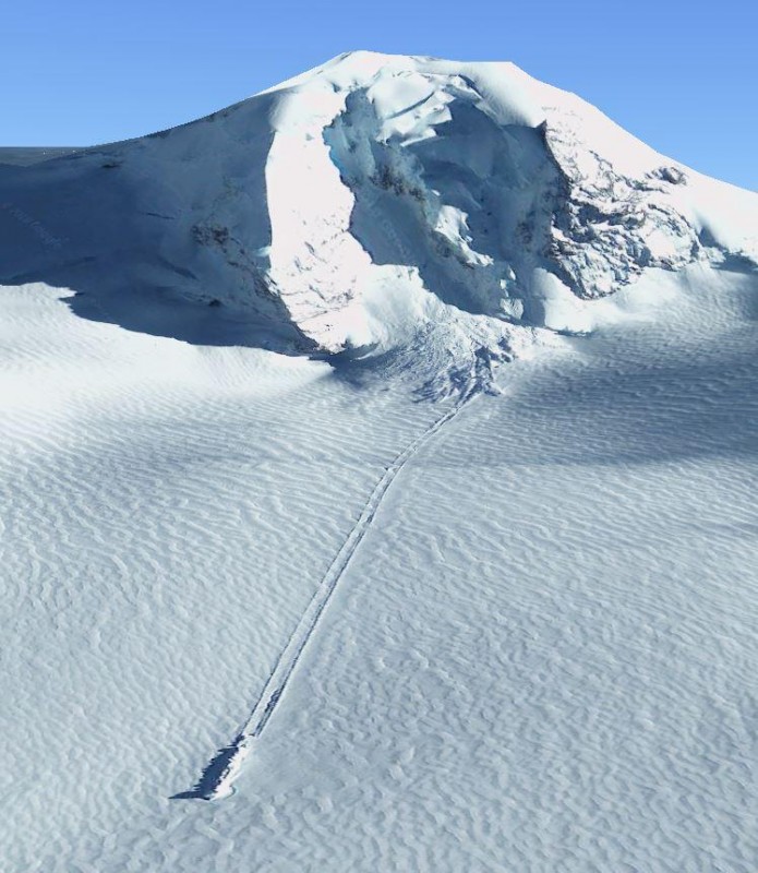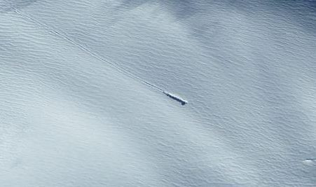 Пользователи сервиса увидели на фотографиях острова Южная Георгия снежные следы огромного неопознанного предмета. По мнению сторонников теории внеземных цивилизаций, такой массивный след мог оставить только инопланетный корабль.