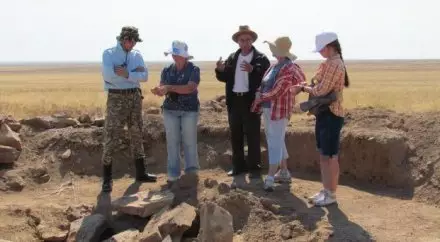 "Курганы гунно-сарматской эпохи несколько отличаются от скифских или сакских. Этот курган был интересен тем, что могильная камера была выложена очень большими каменными плитами, которые принесли сюда с соседних гор Семейтау. Единственная находка в этом кургане - бусинка. Может быть, здесь была захоронена женщина. Но есть и такое мнение - это был воин-мужчина, поскольку у многих древних кочевников был обычай носить на шее небольшое ожерелье из бусин", - добавил краевед Хаджи-Мурат Илиуф.