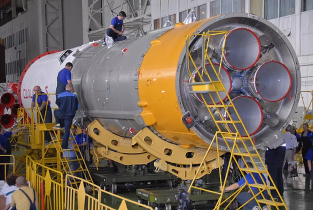 "Сегодня утром прошла выгрузка корабля из вакуум-камеры и перевозка его в стенд. После установки "Союза" в стенд расчеты специалистов космической отрасли России приступили к подключению его систем к наземной проверочной аппаратуре", - рассказал источник на космодроме.