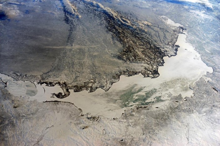 Российский космонавт Антон Шкаплеров, находящийся на Международной космической станции, разместил в своем Instagram фотографию Аральского моря с земной орбиты.