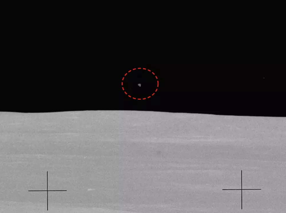 Ниже представлено оригинальное фото, опубликованное NASA. На нем видна слабо светящаяся точка над горизонтом Луны.