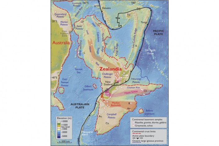 По словам исследователей, Новая Зеландия и Новая Каледония расположены на одной континентальной плите. Толщина коры Зеландии варьируется в диапазоне от 10 до 30 километров. Данная плита отвечает всем требованиям, предъявляемым к континенту: во-первых, ее границы четко сформированы (она отделена от Австралии и Антарктиды), во-вторых, геология Зеландии отличается от других частей света, и в-третьих, на континенте имеются все типы горных пород - вулканические, осадочные и метаморфические, что и отличает его от островов.
