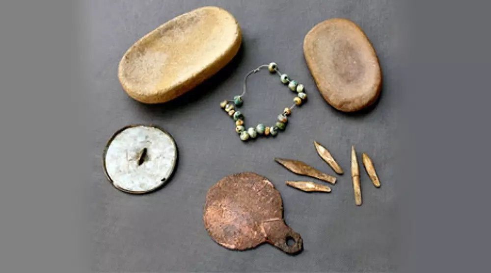 Как сообщил собеседник, на месте раскопок уже найдены керамическая посуда, бронзовые и пастовые бусы. Среди находок есть жертвенник-светильник, а также орудия труда: терочник, ступа для перемалывания зерна, обломок бронзового ножа.