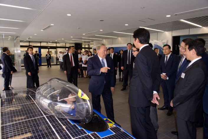 В Японии Нурсултану Назарбаеву продемонстрировали электромобиль на солнечных батареях