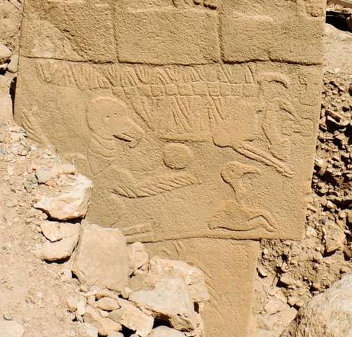 Шотландские исследователи утверждают, что расшифровали символы на одном из столпов, известном как "камень-гриф" или "камень стервятника". Помимо изображений птиц и животных, они обнаружили на барельефе безголового человека, окруженного символами смерти: стервятником и скорпионом. Для древних людей это был символ катастрофы и массовых жертв, говорят авторы научной работы.