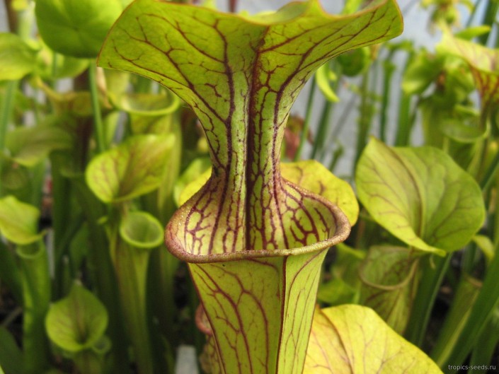 Ловушка саррацении представляет собой кувшинообразные листья, выделяющие сладкий сок. Когда жертва спускается в кувшин, она падает в жидкость, где ее расщепляют бактерии.