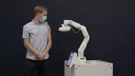 Робота, который вводит вакцины без иглы, создали в Канаде Кадр из видео