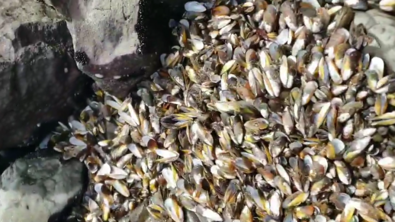 Видео, на котором снят пляж, заполненный пустыми раковинами моллюсков, опубликовал житель Новой Зеландии. Раковины были пустыми, возможно, морских существ съели птицы, рыбы и другие животные.