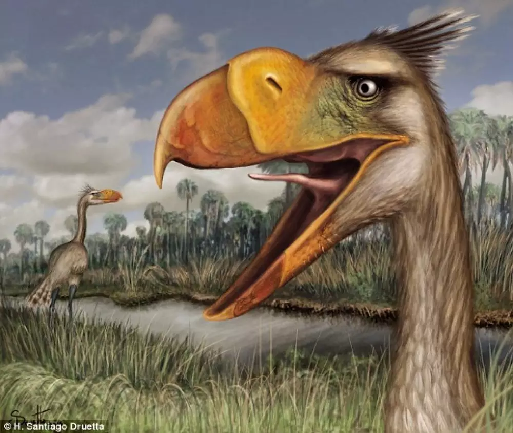 Обнаруженный учеными скелет принадлежит одной из разновидностей хищных птиц-фороракосов - потомков динозавров. Из-за своих больших клювов они получили прозвище "птицы ужаса" (Phorusrhacidae). Животные достигали в высоту 2,5 метра и весили около 300 килограммов. Эти нелетающие птицы были доминирующими хищниками во времена кайнозоя и заселяли территории нынешней Южной Америки.
