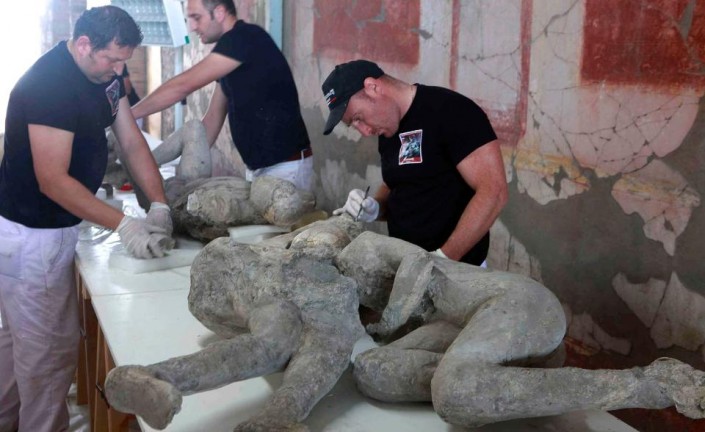 "Помпеи не перестают удивлять. Мы всегда считали, что это объятия женщин. Но компьютерная томография и ДНК показали, что они являются мужчинами. По данным анализа, мужчинам было около 18 и 20 лет, хотя последний, возможно, был и старше. Их тела располагаются так, что один человек головой упирается в грудь другого", - сообщил руководитель археологических раскопок Массимо Осанна.