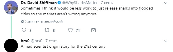 "Иногда я думаю, что было бы проще выпустить акул в затопленных городах, чтобы мемы оказались правдой"