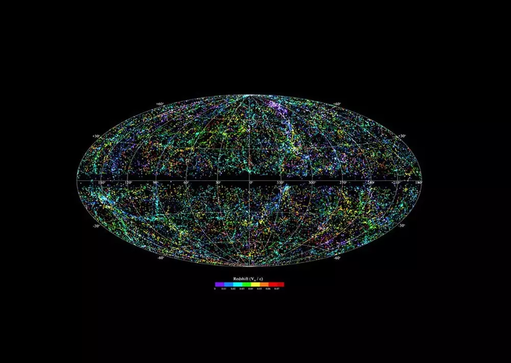 По словам ученых, на карте представлено около 95 процентов видимого неба и 45 тысяч галактик, известных человеку, которые удалены от Земли на расстояние до 380 миллионов световых лет. Для того, чтобы составить карту, астрономы использовали сканеры, работающие в инфракрасном диапазоне, которым удалось зафиксировать ранее невидимые из-за космической пыли объекты.