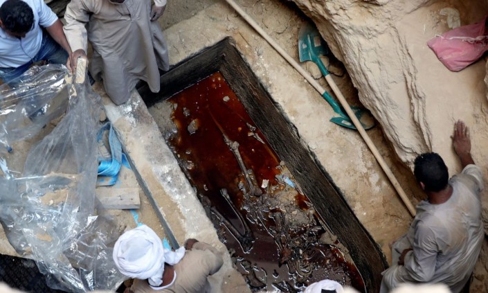 По словам представителя египетского Министерства по делам древностей Аймана Ашмави, все кости из саркофага извлечены, учтены и очищены. Зловещий красноватый цвет жидкости, заполнявшей саркофаг, вероятно, имеет самое простое объяснение: это цвет сточных вод, проникших внутрь через трещину.