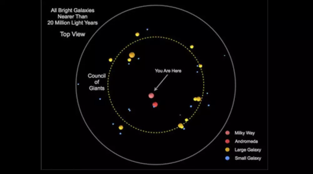 Маршалл Макколл предположил, что Млечный Путь, Туманность Андромеды и другие близлежащие галактики образовались из одного плоского "листа" темной материи. Ученый составил точную карту ярких галактик в радиусе 20 миллионов световых лет от Земли. Все они, по словам Макколла, лежат в одной плоскости и образуют диск диаметром 24 миллиона световых лет и толщиной порядка 1,5 миллиона световых лет. Этот объект ученый назвал Собранием гигантов.