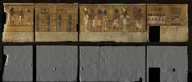 Ученый рассказал, что следы двух потайных порталов нашел, подробно изучая трехмерные снимки гробницы Тутанхамона, сделанные в 2014 году. Дверные проемы не замечали целое столетие из-за того, что стена покрыта фреской, поясняет археолог.