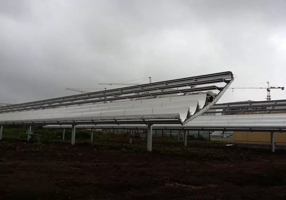 Система состоит из одноосевого трекера (электропривод) и шестирядных сферических зеркал, отражающих свет на кремниевые солнечные элементы, что увеличивает концентрацию солнечного света, за счет чего удваивается производительность системы и соответственно выработка электроэнергии.