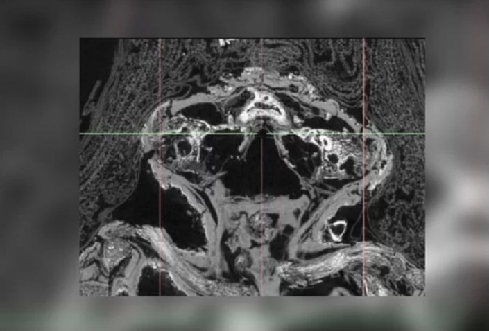 Открыв эту аномалию, работники музея связались с Нельсоном и его коллегами, специалистами в области компьютерной микротомографии. Ученые просветили мумию при помощи сканера и смогли увидеть даже самые мельчайшие ее детали, которые рассказали им о том, кто на самом деле был погребен под слоем позолоченного папируса и тканей.