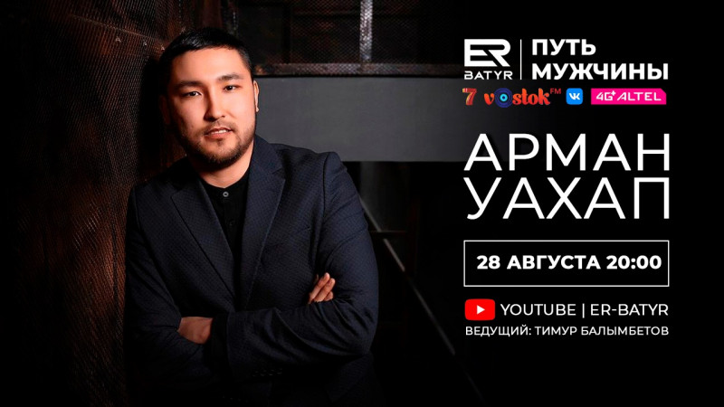 Арман Уахап в проекте ER-BATYR: Пусть у нас будет много сознательных и мудрых героев Новый гость проекта ER-BATYR - президент общественного фонда "Батыр боламын" Арман Уахап. В беседе с ведущим Тимуром Балымбетовым он расскажет