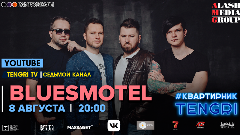 #КвартирникTengri. Сегодня онлайн-концерт BluesMotel Медиахолдинг Alash Media Group совместно с продюсерским центром Pantograph продолжает серию онлайн-концертов #КвартирникTengri. Концерт группы