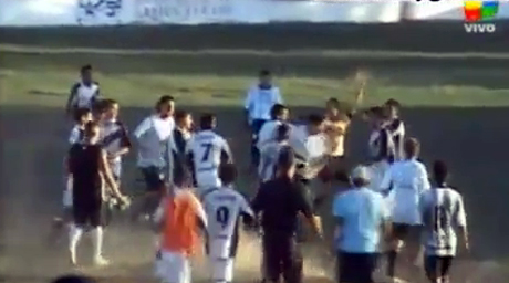 ВИДЕО: Аргентинский рефери показал 36 красных карточек Инцидент произошел во время одной из игр аргентинского чемпионата. Удаление с поля получили не только игроки, но и персонал команд.