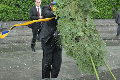 Упавший на Януковича венок продадут с аукциона Торги намечены на 27 мая. Стартовая цена лота составит восемь тысяч гривен (около 1000 долларов). На участие в аукционе поступило более 30 заявок.