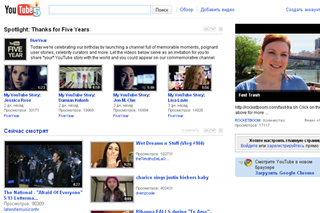 Число просмотров YouTube достигло двух миллиардов в день Представители компании сделали заявление в преддверии празднования пятилетия со дня запуска бета-версии портала.