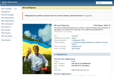 Виктор Ющенко зарегистрировался "ВКонтакте" Обновлениями занимается пресс-служба политика. В разделе "интересы" значится, что главным приоритетом для Ющенко является Украина.