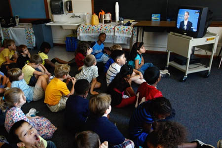В школе США дети учили восхваляющую Обаму песню Интернет-общественность обеспокоена растущим культом личности первого афроамериканского президента.