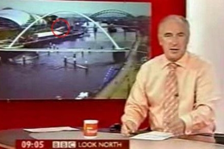 В Великобритании НЛО появилось в прямом эфире BBC Веб-камера зафиксировала быстрое движение белого светящегося тела. Объект появился прямо позади ведущего BBC во время прямого эфира.