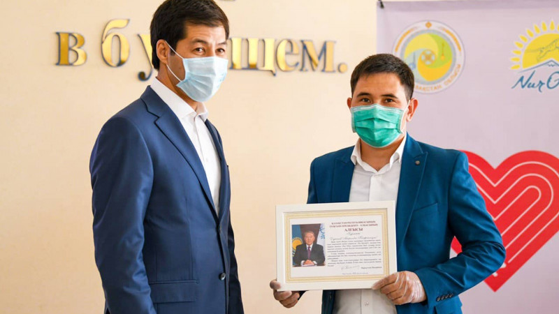 Волонтерам ЗКО вручили благодарственные письма от Елбасы Сегодня в торжественной обстановке председатель Западно-Казахстанского областного филиала партии Nur Otan, аким области Гали Ескалиев вручал