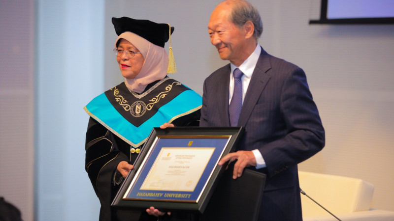 Президент Сингапура получила титул почётного профессора Назарбаев Университета Президент Сингапура Халима Якоб посетила Назарбаев Университет, где выступила с лекцией на тему: “От Города-льва до Великой Степи”. Гостями