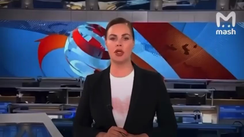 Девушка с плакатом ворвалась в прямой эфир российского "Первого канала" Во время выпуска новостей российского "Первого канала" в прямой эфир ворвалась девушка с плакатом, призывающим остановить войну, передает Tengrinews.kz