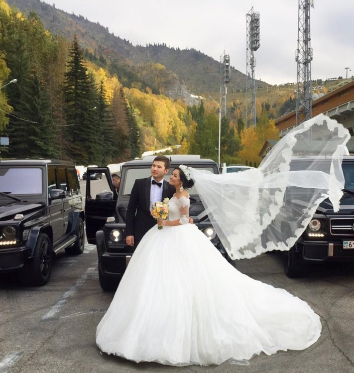 Клара Исаның қалыңдық көйлегі - дизайнер Наиль Байкучуковтың қолынан шыққан туынды.