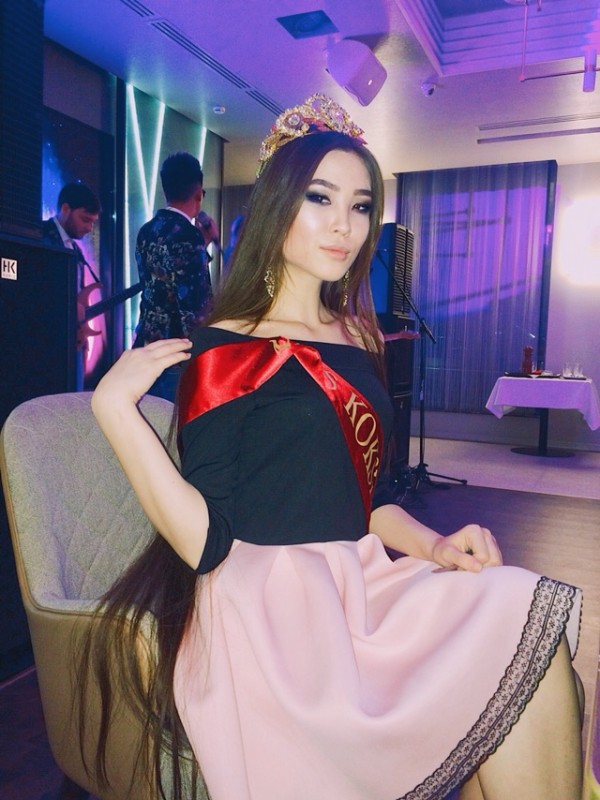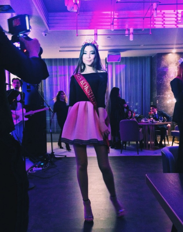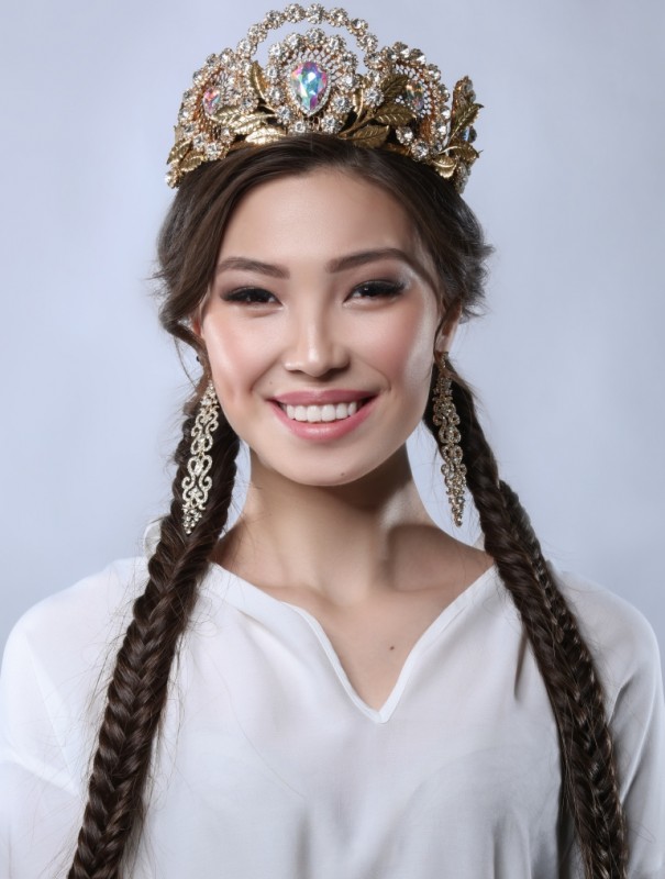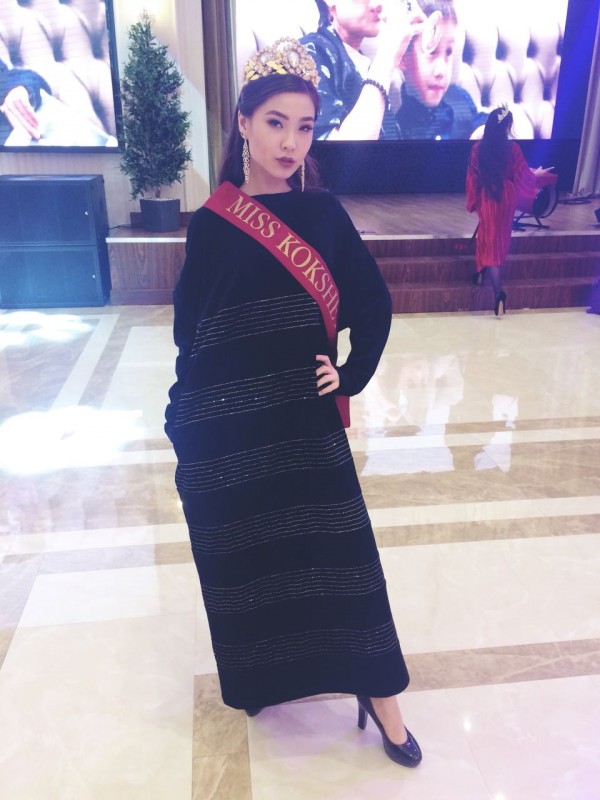 Следующая участница - "Мисс Кокшетау" Аина Жумабаева. Она учится в Кокшетауском государственном университете имени Шокана Валиханова на переводческом деле