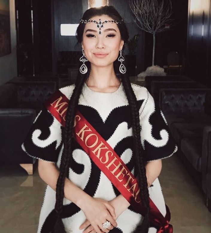 Следующая участница - "Мисс Кокшетау" Аина Жумабаева. Она учится в Кокшетауском государственном университете имени Шокана Валиханова на переводческом деле