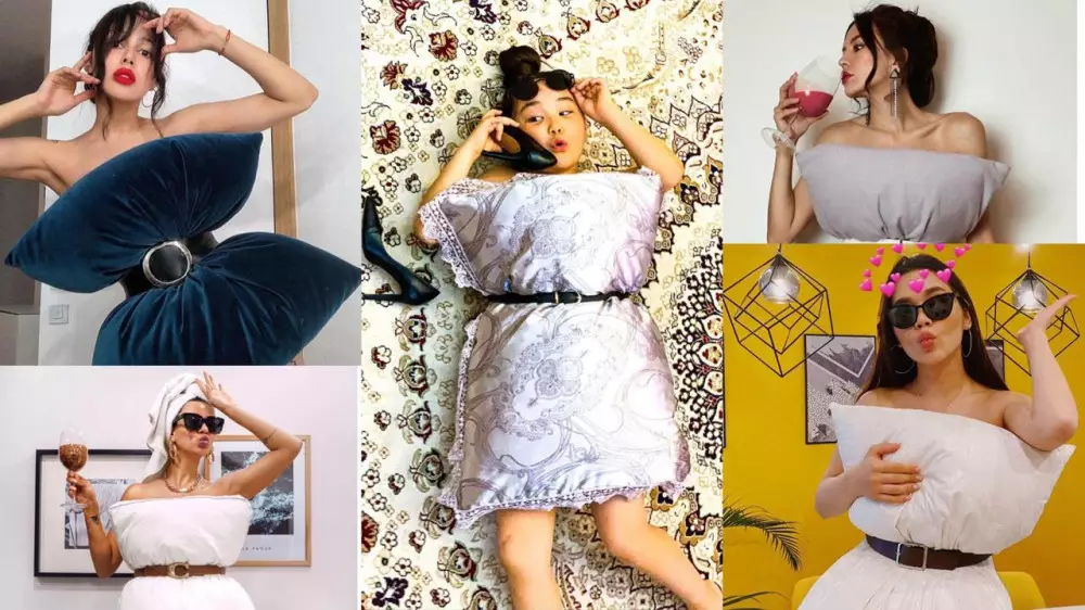 Instagram қолданушылары арасында #QuarantinePillowChallenge, қазақшалағанда "Жастық челлендж" кең тарап кетті. Қыз-келіншектер жастықтан көйлек жасап, киімін сәнді әшекеймен әсемдеп, карантин кезіндегі суреттерін парақшасына жүктеп жатыр. Жастықты денеге бекіту оп-оңай, оған қалың белдік қана керек.