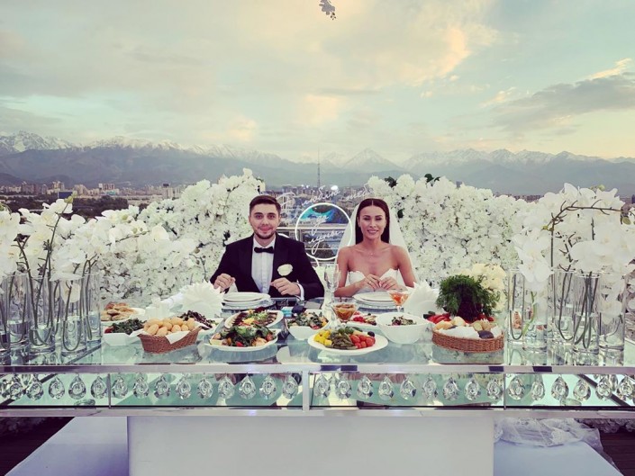 Свадебное торжество состоялось 19 сентября в одном из ресторанов Алматы. Избранником исполнительницы стал 26-летний Артем Обухов.