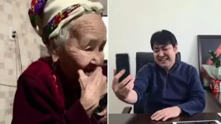 "Мейрамбек, тәуір болып кет, жаным. Қазақтың атын шығара бер, жақсы болып кет, айналайын. Тілеуіңді тілеп жатырмыз", - дейді әже видеода.