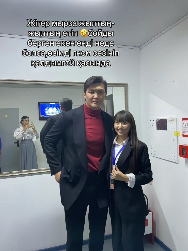 "Жігер мырза жылтың-жылтың етіп. Не болса да бойды берген екен. Өзімді ергежейлі сезініп қалдым", - дейді видео авторы.
