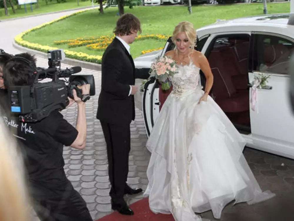 Невеста поменяла три свадебных платья во время торжества. Все они были сшиты известным дизайнером Игорем Гуляевым - уроженцем города Сатпаев Карагандинской области. На основном банкете Кудрявцева блистала в платье, которое подчеркивало ее талию, а верх наряда был обшит жемчугом. Отметим, что сама Кудрявцева родилась в Усть-Каменогорске.