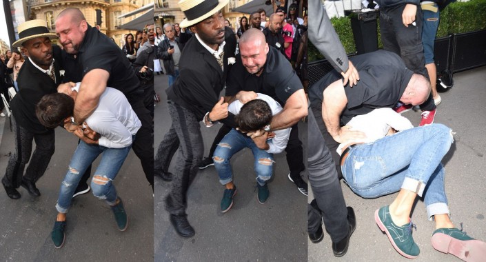 Когда Кардашьян вышла из автомобиля, Седюк подбежал к ней и поцеловал в "пятую точку". Все происходило в окружении журналистов и толпы зевак. Охранники среагировали быстро. Они оттащили хулигана от знаменитости, повалили на землю, а затем вывели за ограждение.